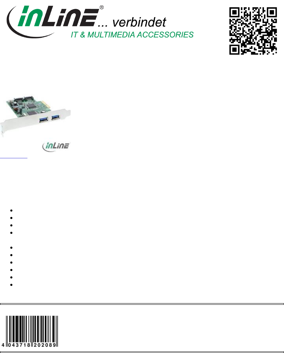 InLine® 2x USB3.0 + 2x SATA 6Gb/s combo controller card, PCIe