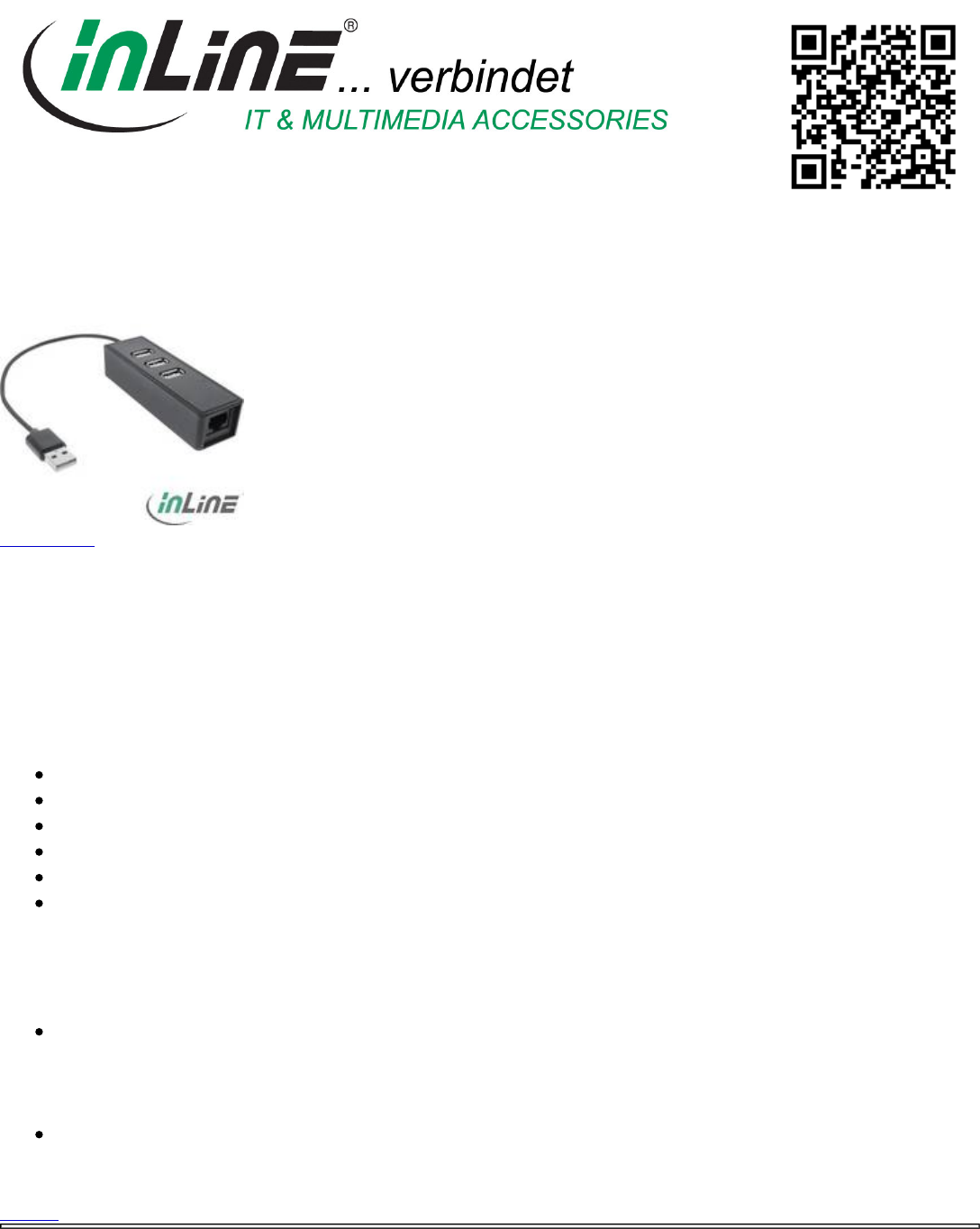 InLine® USB 2.0 Netzwerkadapter, 10/100MBit + 3-Port USB 2.0 Hub
