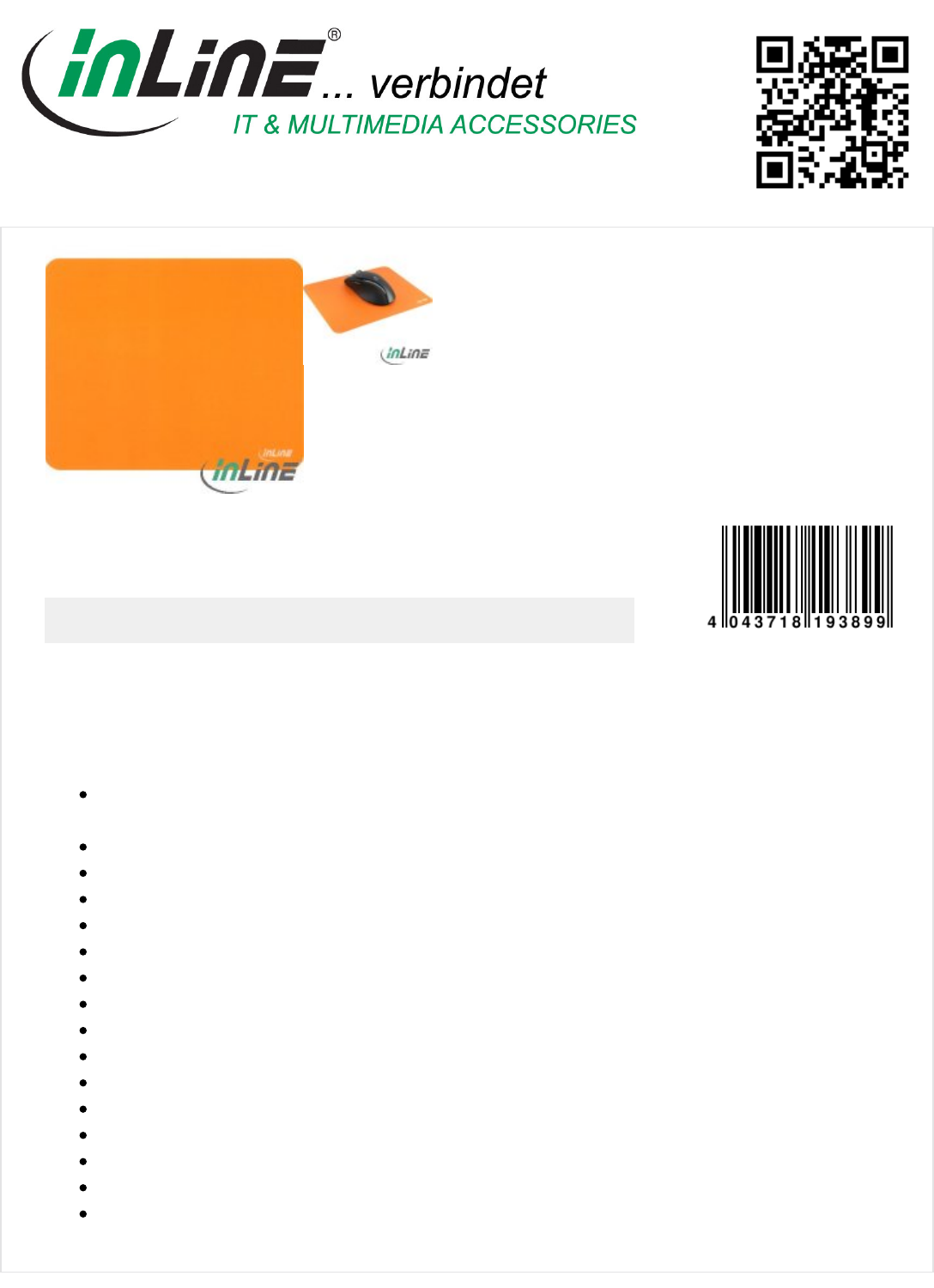 InLine® Mouse pad, anti-microbial, ultra-
