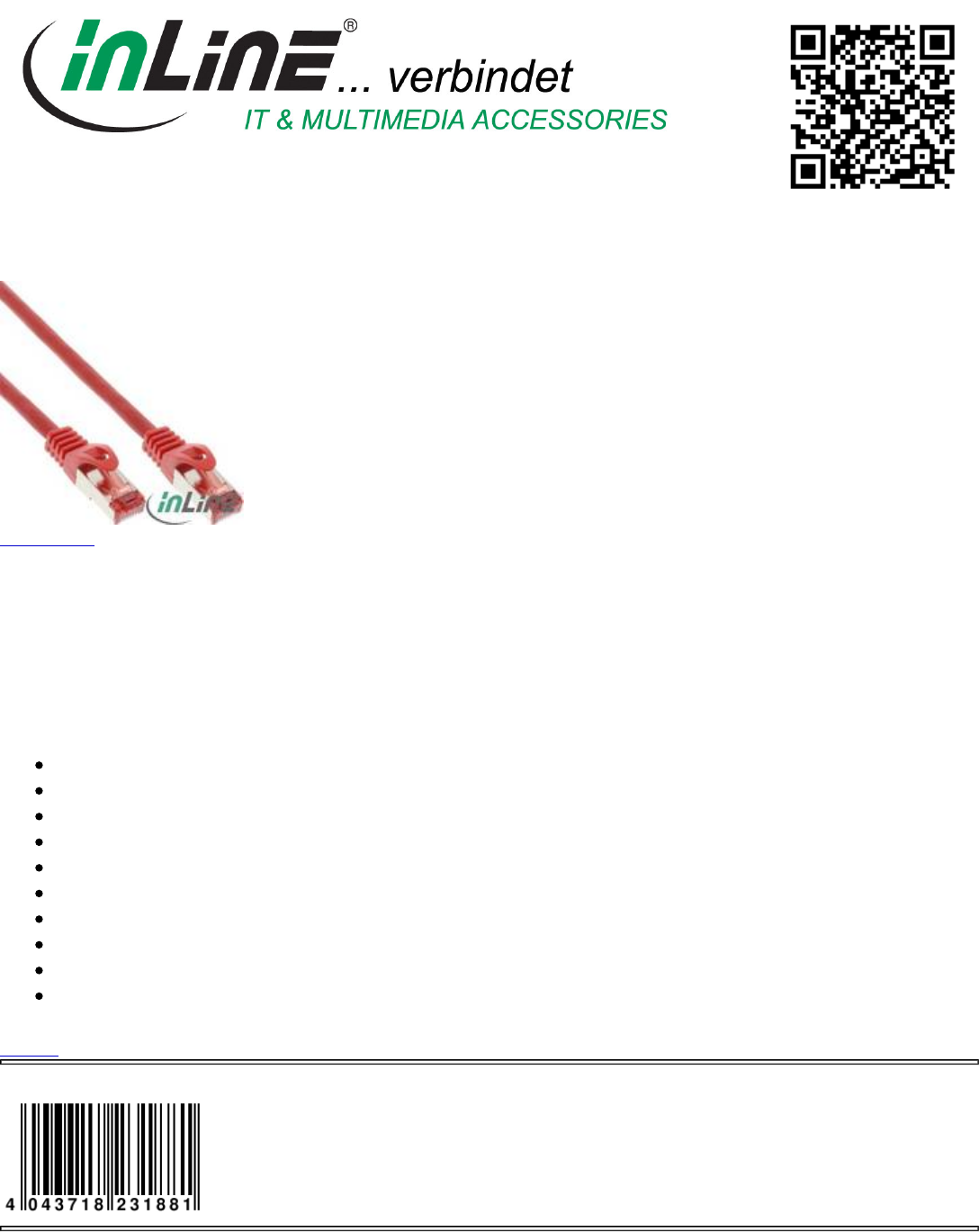 Category: Cable, Patch Cable Cat.6, Cat.6 S/FTP (Pimf)