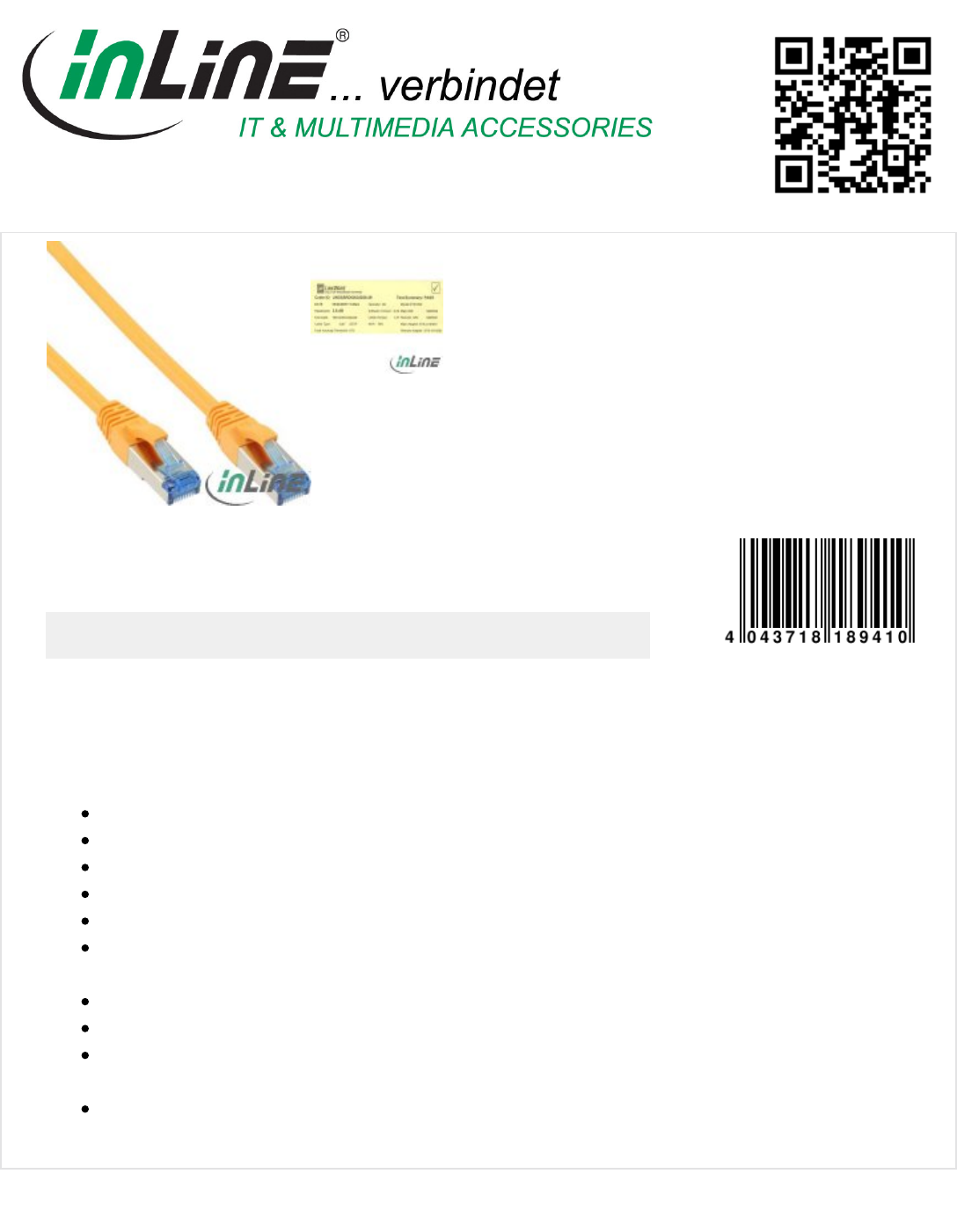 Patch cable in the highest quality for a professional cabling in Gigabit and 10 Gigabit range,