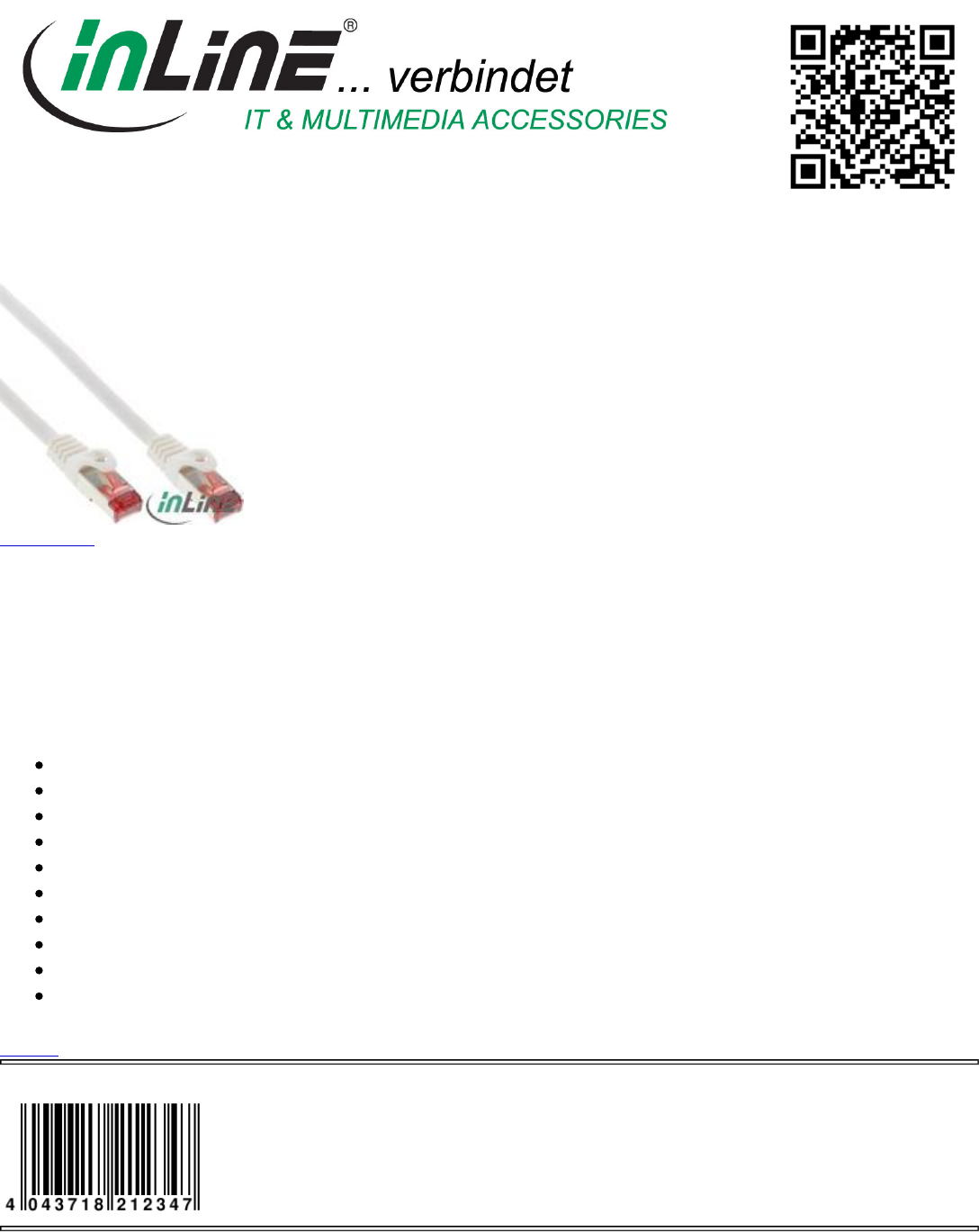 InLine® Patch cable S/FTP (PiMf), Cat.6, 250MHz, halogen free,