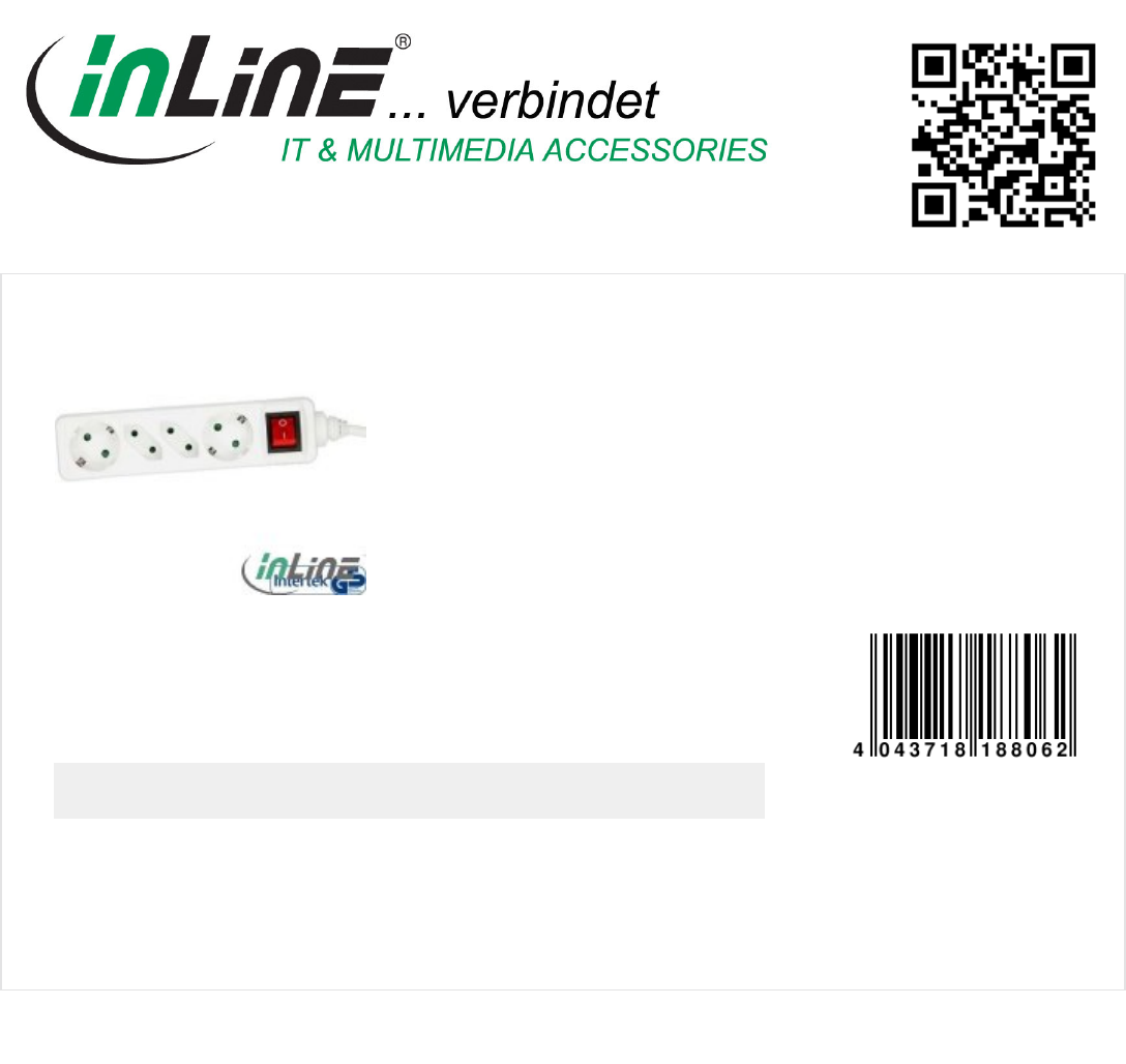 InLine® power strip, white, 4-fold with on/off switch, 2xSchutzkontakt + 2xEuro, 1,5m supply