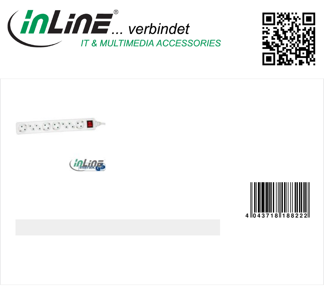 InLine® Power strip, white, 8-fold,