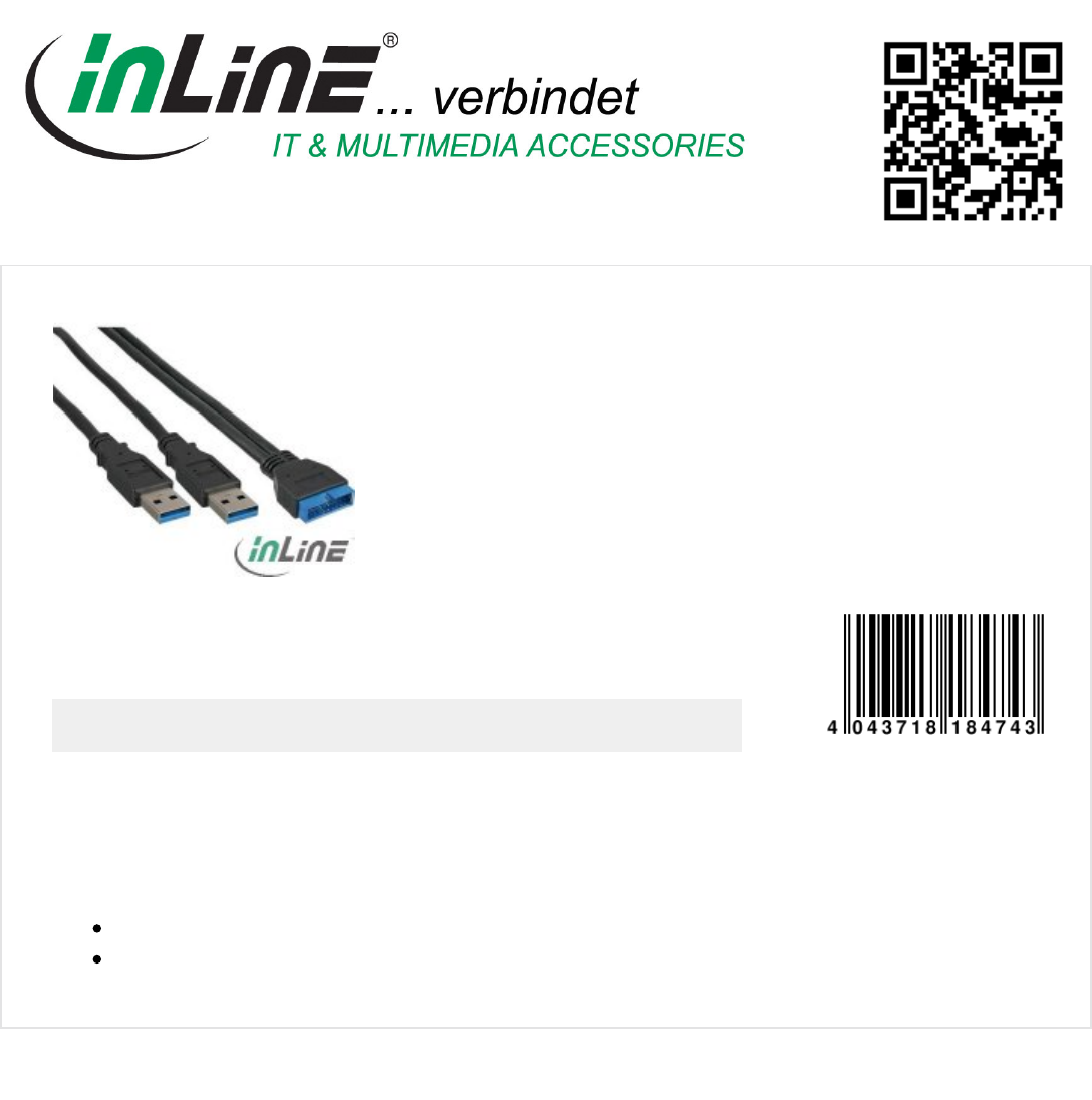 USB 3.0 adapter cable, 2x USB A male to 19pin mainboard connector, to connect internal