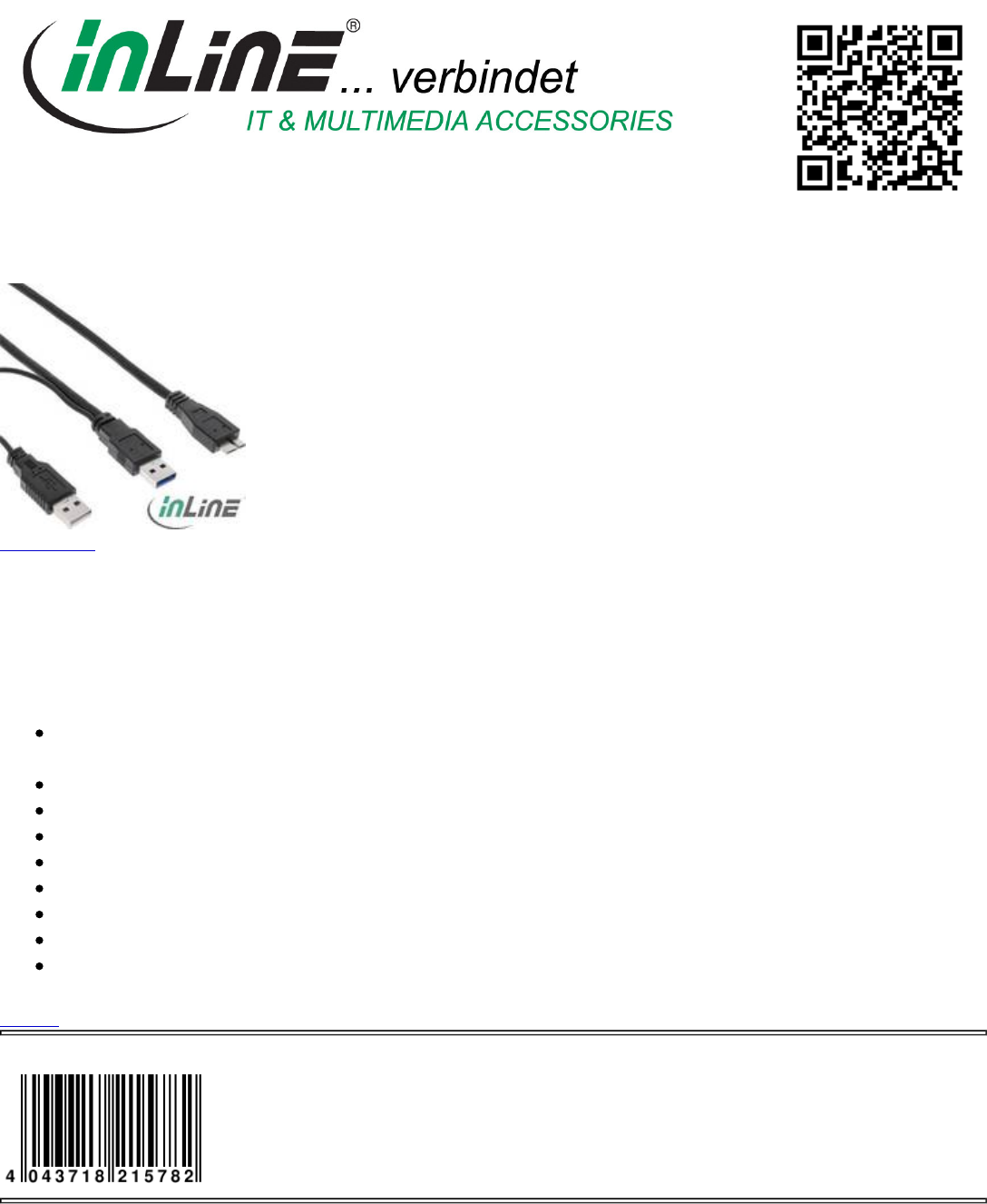USB 3.0 Y-connection cable for connecting USB 3.0 hard drives to the PC, the second USB A plug is for